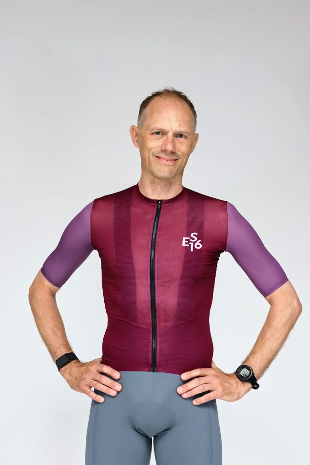 Mit seinem niedrigen Kragen und dem eng anliegenden Performance-Schnitt bietet das ES16 Fahrradtrikot Supreme eine aerodynamische Passform, die sich wie eine natürliche Verlängerung des Körpers anfühlt. Die tiefe Bordeauxfarbe verleiht auf der Straße einen exklusiven und stilvollen Ausdruck.