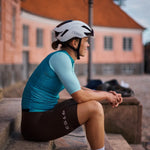 Il est transporté en sueur et très respirant. La finition en bas se compose d'une bande de silicone élastique qui maintient le maillot en place.